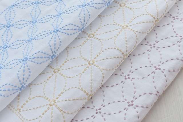 和風の模様が懐かしさを感じさせる刺し子。今は100円ショップでもいろいろな模様が手に入ります。