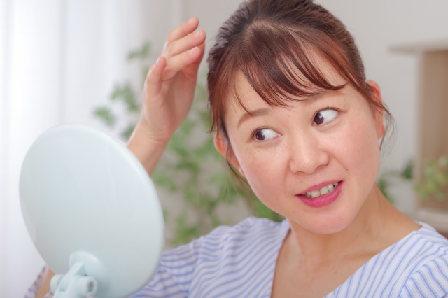 白髪になってきた、髪が細く薄くなってきた。また、顔のシワやたるみが気になる、まぶたが下がってきて目の印象が全然ちがう人みたいのなる、など。
